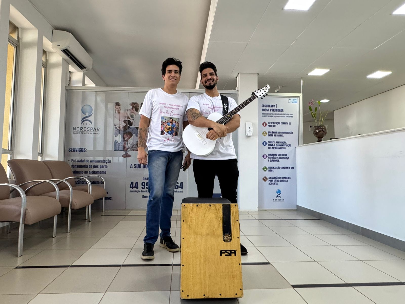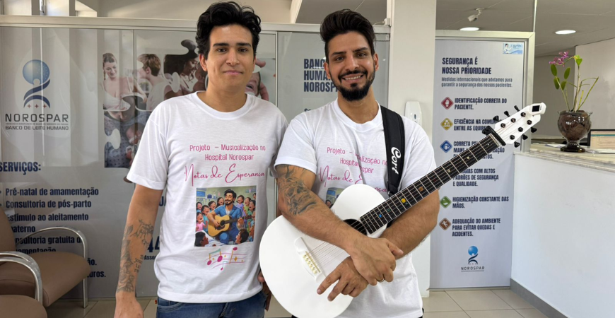 A cada quinze dias, das 15h às 17h, os corredores da Associação Beneficente de Saúde do Noroeste do Paraná – Hospital e Maternidade Norospar ganham um som diferente. Violão, voz e repertório cuidadosamente selecionado anunciam a passagem do Projeto “Notas de Esperança”, iniciativa voluntária do músico Dhell Bonacin, acompanhado por músicos parceiros.