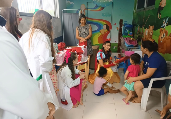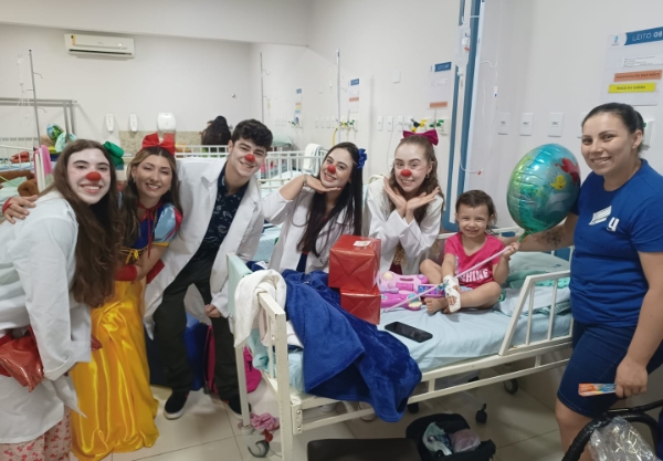 A comemoração também contou com a participação do projeto Uniparlhaços, formado por acadêmicos do curso de Medicina da Unipar. Os voluntários circularam pelos corredores e quartos da Pediatria levando música, brincadeiras, interação lúdica e muitos sorrisos. A presença do grupo reforçou a importância do acolhimento emocional no processo de recuperação das crianças.
