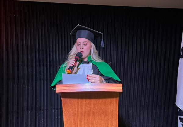A Paraninfa da Turma, Prof.ª Arietha da Hora Araujo Santos, emocionou o público ao celebrar o percurso dos estudantes. “Esta turma se distingue pela persistência e pela união. Caminharam juntos, apoiaram-se mutuamente e chegaram até aqui com maturidade e propósito. É uma grande honra ter acompanhado essa trajetória e testemunhar o brilho profissional que cada um carrega”, declarou.